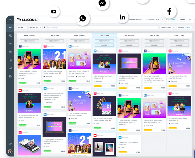 There’s a huge amount of features available on Falcon, but to name a few, there are trend trackers, a campaign planner, a unified calendar and just so much more!